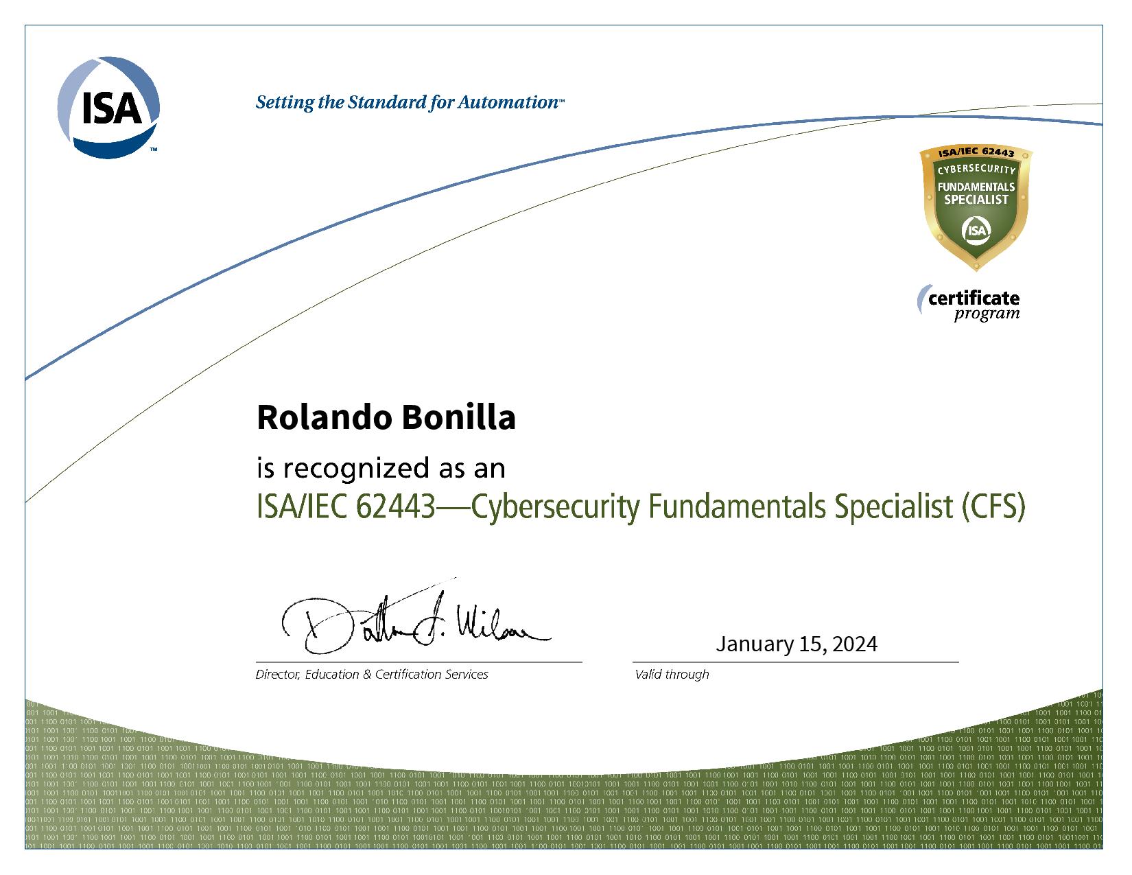 Controls Engineering Manager Rolando Bonilla from our Chicago office on earning his ISA Cybersecurity Fundamentals Specialist certificate.