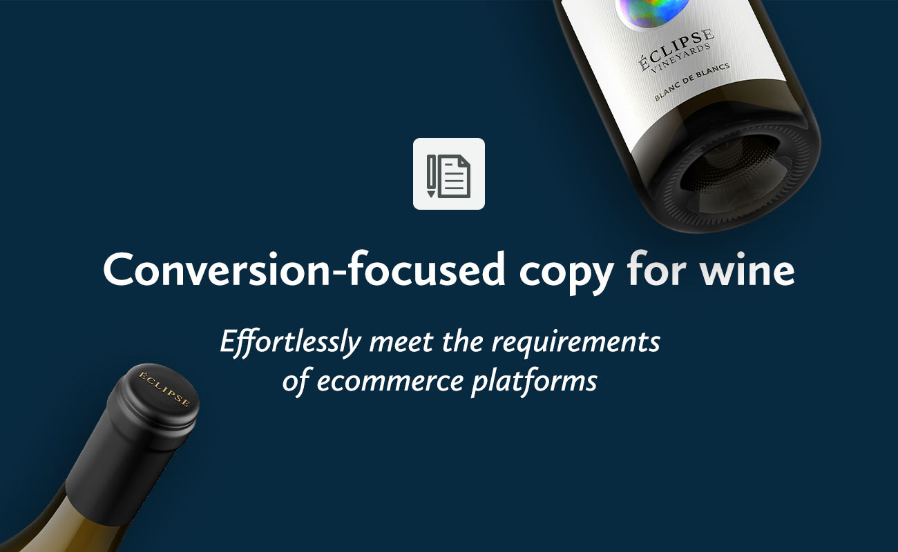 Ecommerce copy is your secret weaponGet conversion-focused copy for wine, for your website and sales channels.For shoppers, it's about finding one, two, or three reasons why your wine fits into their