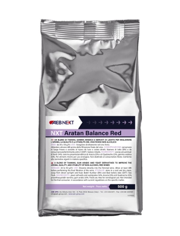 A natural and unique blend of proanthocyanindin tannins, gum arabic, and yeast derivatives to enhance the aroma, quality, and stability of de-alcoholized red wine NXT Aratan Balance Red is a natural