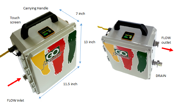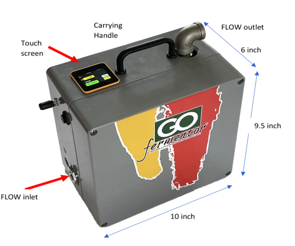 GOpump is an intelligent pump for pumping wine or similar fluids. It can be used in 1) PUMP mode where the delivery rate is automatically controlled at the user set flowrate; 2) BATCH mode where a use