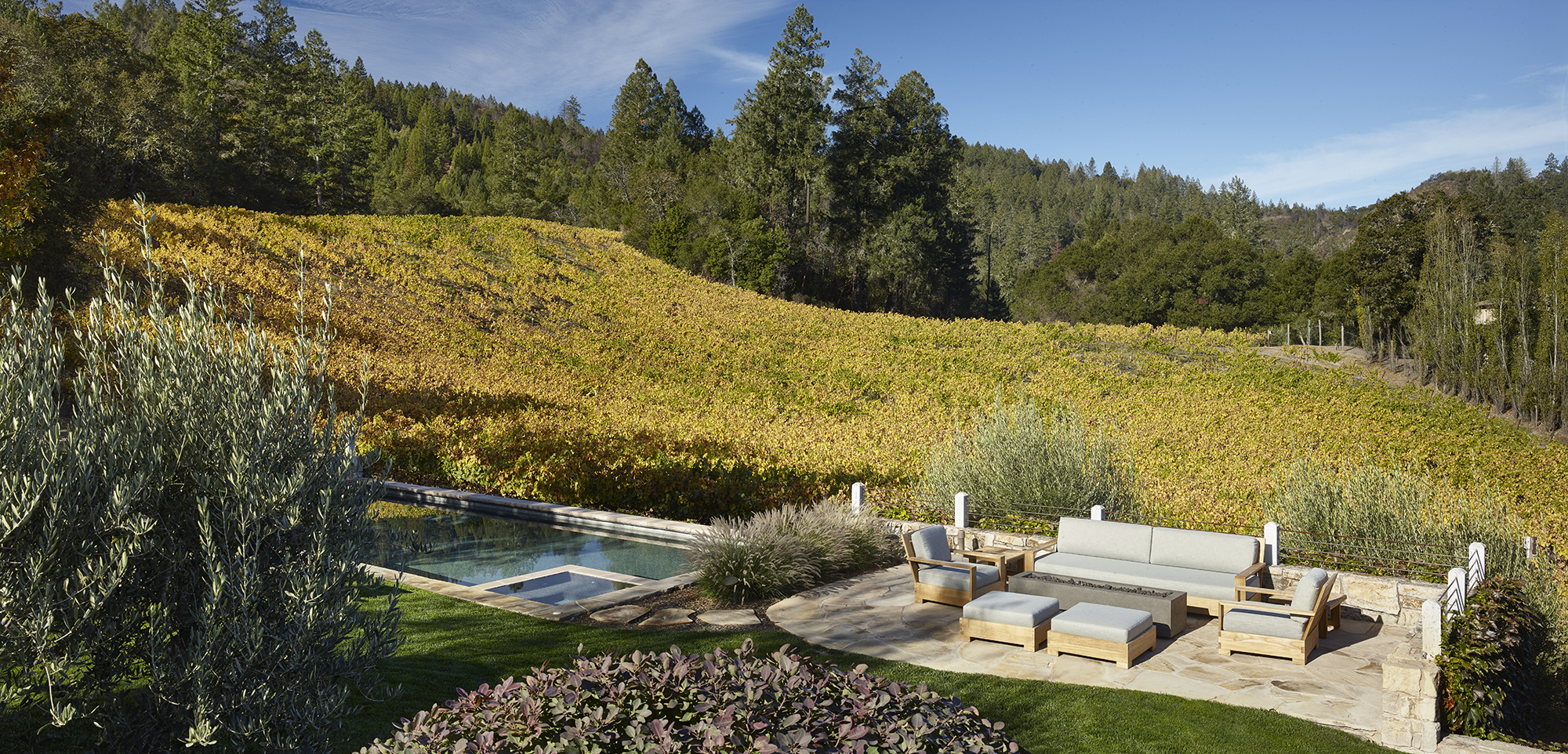 Allen Land Design has been and continues to be proactive in their design approach to enhance lush environments while still maintaining a fire protective barrier.Pools are possible now if the strategy