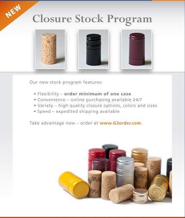 Our new stock program features: Flexibility – order minimum of one case Convenience – online purchase available 24/7 Variety – high quality closure opt