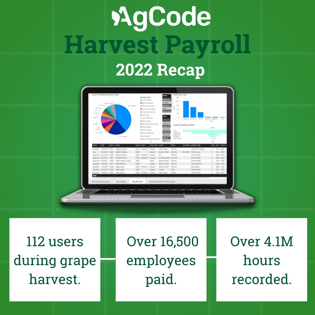 With AgCode you can simplify your payroll and track live labor activities as they happen in the field. Here are some highlights from our Payroll feature from this year's harvest season.If you're unsur