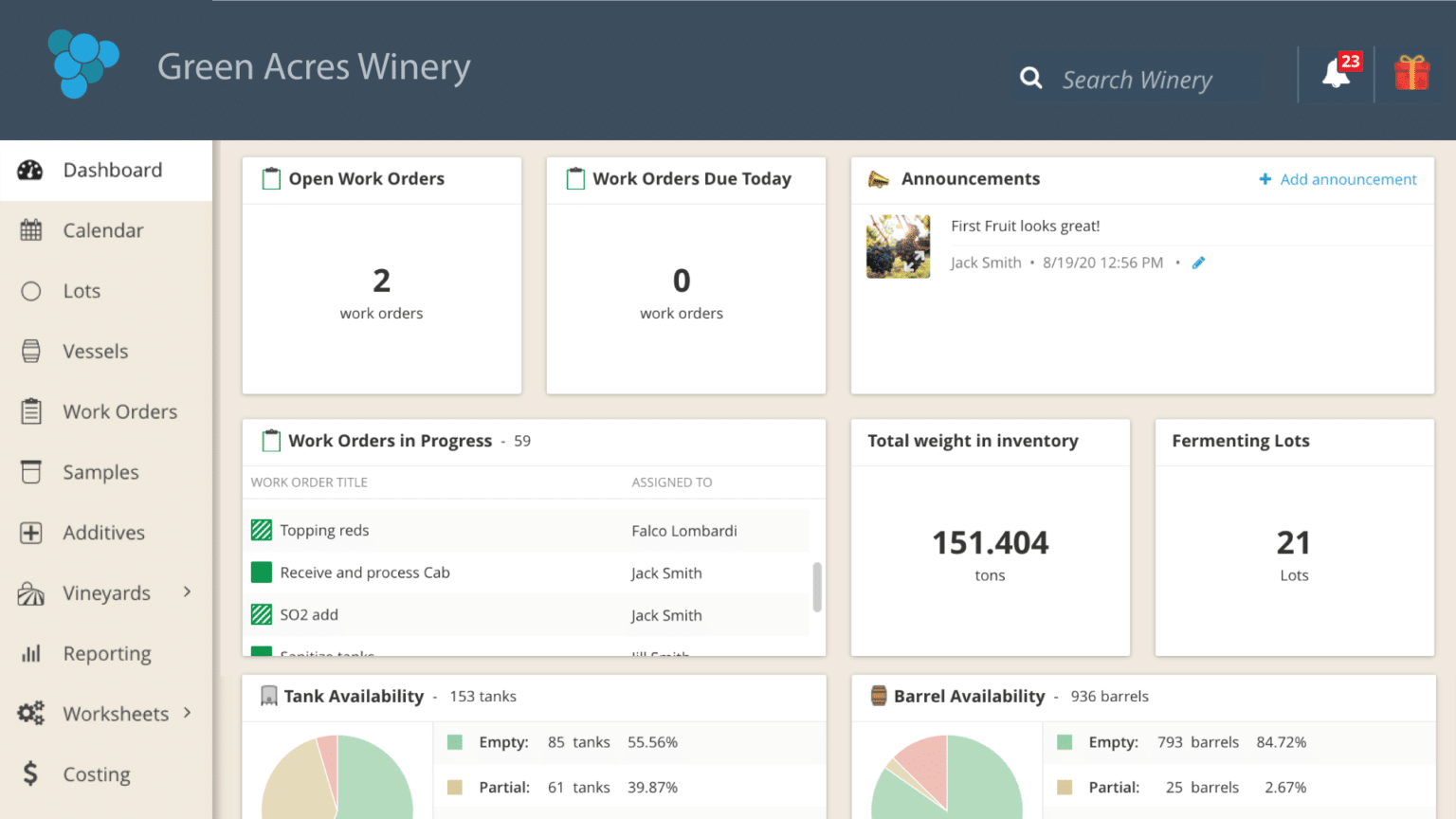 InnoVint Features | Year in ReviewThe InnoVint team has been hard at work, and we released some pretty significant improvements last year! Let’s dig into the highlights:Winery DashboardFirst up, we